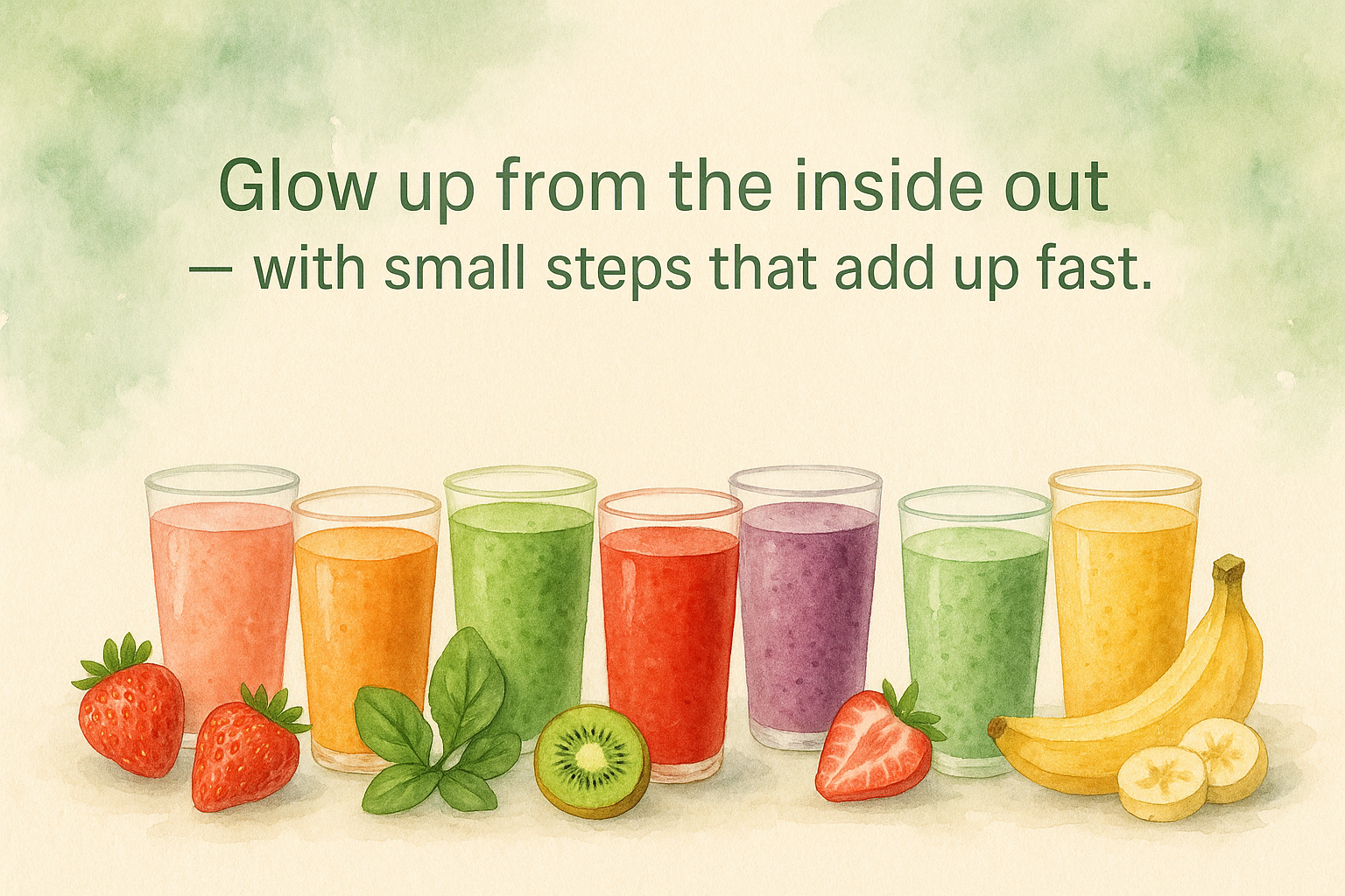 Zero guesswork. Zero overwhelm. Just one smoothie + one glow-up mission each day.